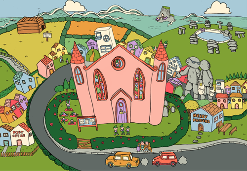 Cover illustration and double page spread for local zine ‘Boulderdash’ - an exploration of things related to stones, drone and noise. The theme for the issue was ‘folklore’.